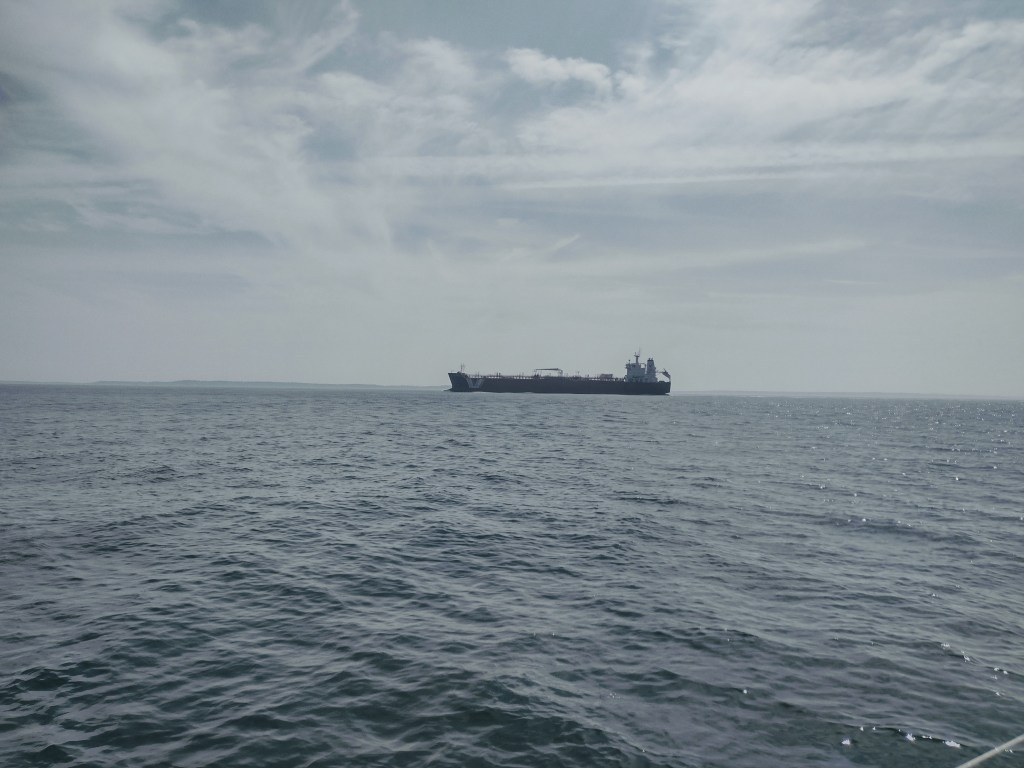 The sun started to beat down as we motored along (no wind to sail…boooo), thankful for whatever breeze we could get, a very large tanker passed us by. This started a conversation about ships we would meet up with along the way. I definitely want to stay as far away from these guys as possible!! We then passed a log about 20’ long that was floating in the Sound and yes, I want to stay away from these guys too!!
