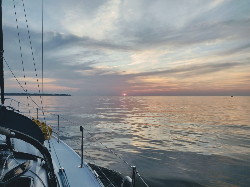 We finally arrived at Port Jeff around 7:15 just as the sun was setting and it was absolutely beautiful!! We found a perfect spot to anchor then proceed to have a great dinner of Ramen noodles and celebratory Manhattans supplied by my good friend Tony (excellent batch, Tony!!)