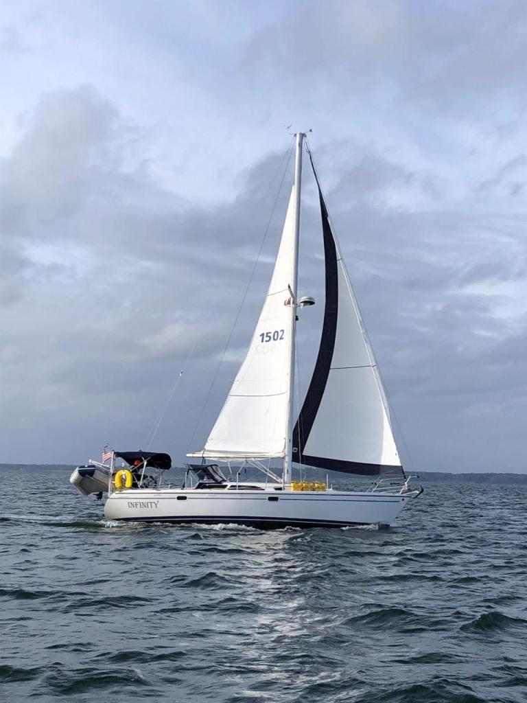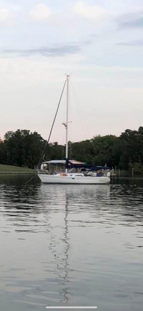 We made the turn to head up the Potomac River and ran into a strong wind on our nose that made for a rough ride. We made it about 4 miles up the river before we headed to a quiet anchorage that got us out of the wind. Once things had quieted down overnight, we continued up the river with a perfect wind to sail with. Motors off, sails out, we’re sailing!!