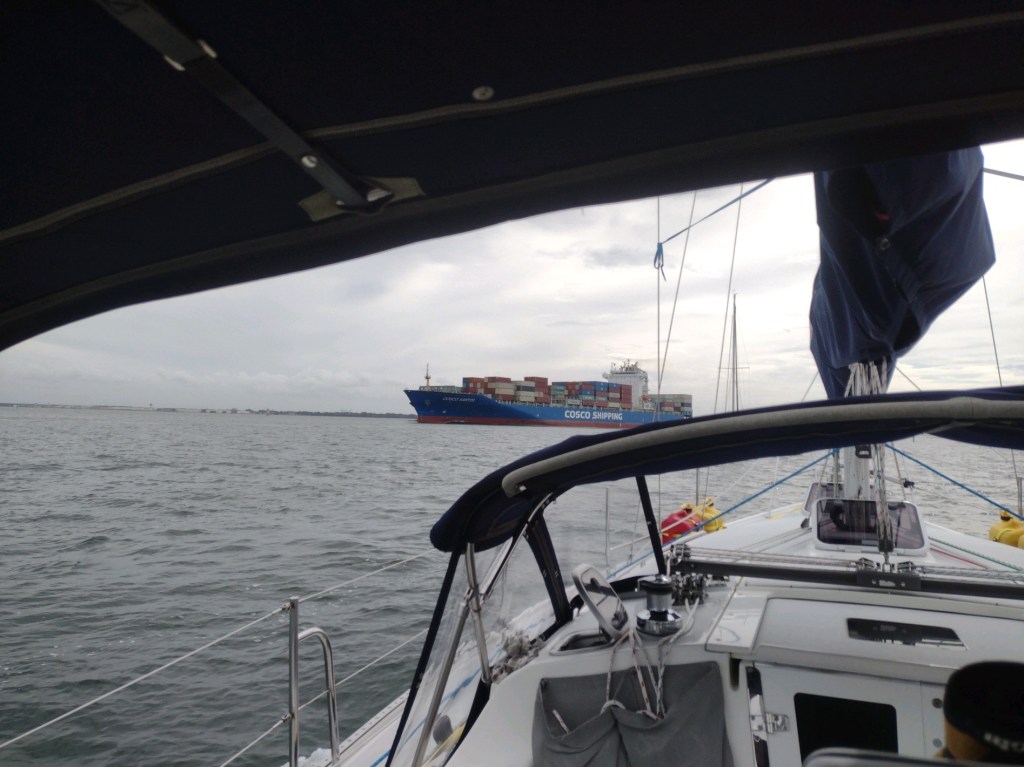 So I’d been running the boat the entire day with the front hatch open to circulate air through the boat. The seas had been pretty calm so I wasn’t too worried about any water splashing in even though I’d been warned about it quite recently. In Norfolk, there’s a very large naval presence as everyone knows, but there’s also a lot of commercial shipping that goes on there too. This means a lot of container ships and freighters go in and out all the time.