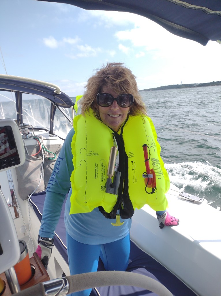 The first gust hit me from behind and even though I didn’t see what the wind gauge registered, I knew it was over 20 knots by the way the boat accelerated up to almost hull speed. This is how I looked at that moment…😳. The second gust came in a few seconds later and decided to never leave!! I had a pretty steady wind of 18 knots with gusts into the 20’s as I sailed along under full jib. I quickly decided to put a reef in the jib as I knew that once I turned up into the river, I’d be sailing on a close haul and would definitely have too much sail out if I didn’t reef.