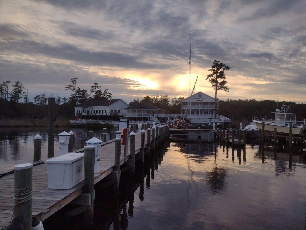 I was up at 4:00 so I could get a jump on the day as it was going to be 80+ miles and 14+ hours. I went out the inlet and turned northish once I cleared the jetty. Otto (the autopilot…😁) was directed to head straight towards the Beaufort inlet about 12 hours later…nothing in the way, no rain, no wind to speak of, and not another boat around.