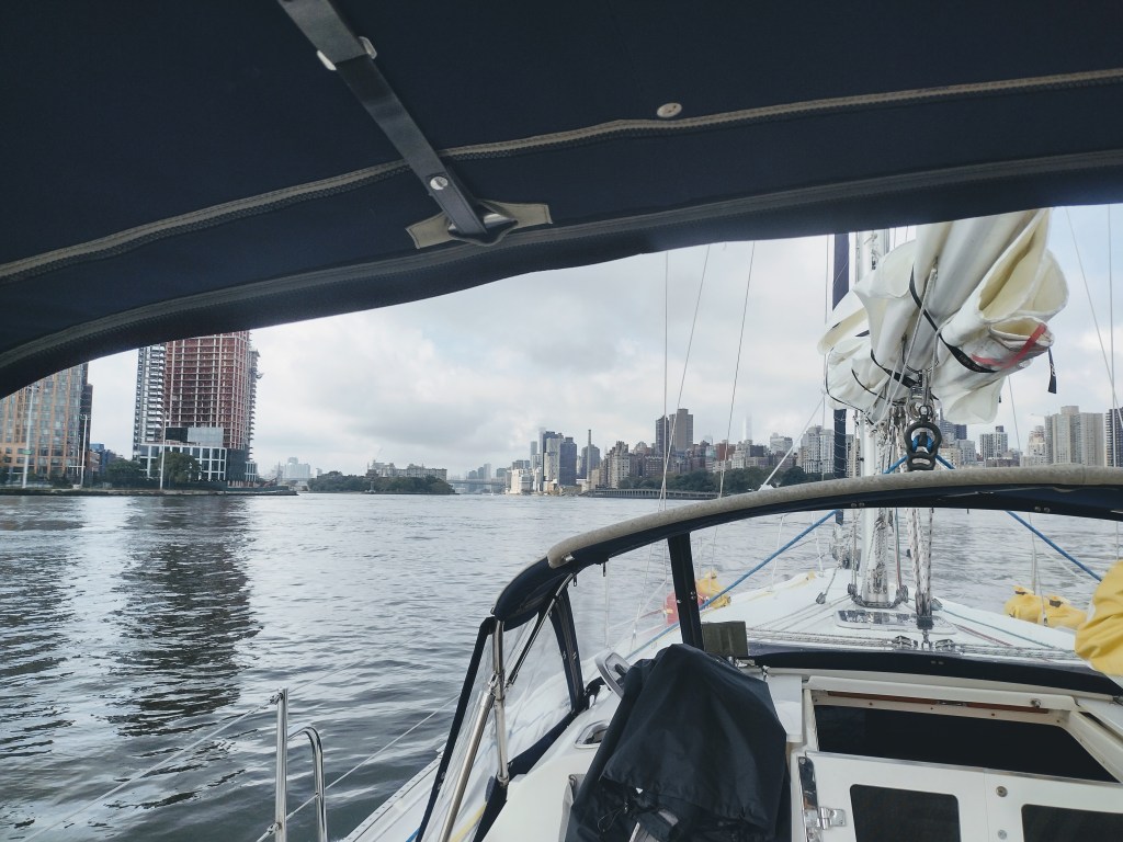 I’m so glad I had set up a tablet with AquaMaps at the helm to back up my primary chartplotter cos you can get lost real quick in NY Harbor and that’s definitely something you don’t want to have happen!! I made my way past the big ship anchorages as water taxis, ferries, and traffic big and small zipped around me. It was hard enough trying to figure out where to enter the East River without everything else going on so my head was on a swivel for the next couple of hours.