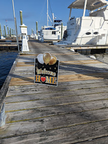 After the mainsail was all set, I made my way back to the cockpit, disengaged the autopilot, and turned Infinity towards Shenny. I knew Denise was waiting on the dock so I motored in at a quick pace. The winds had dropped to a very manageable amount but I was still nervous about getting into the slip. As I came around the jetty just outside SYC, I couldn’t believe what I saw at the end of the dock. Instead of just Denise standing there to welcome me home was a large gathering of my friends and family!! They were holding “Welcome Home” signs and cheering as I made my way towards the dock. Being the smartass that I am, I quickly grabbed the remote mic for the VHF, switched it to the PA setting to power up the speaker on the mast, then yelled out my most famous words in history…”Hey bitches, I’m back”!! A huge cheer rang out from the dock with that one…🤣🤣🤣. I turned down the fairway leading to Infinity’s slip and got ready to back in as usual. I had some lines set up and there were plenty of hands now to take them so it didn’t take long to get Infinity secure in her slip. All that was left was to shut her down one final time so with a pull of the fuel shutoff handle, she rumbled to a quiet stop. I gave her a gentle tap on the steering wheel and thanked her for bringing me back home safely after 9 long months.